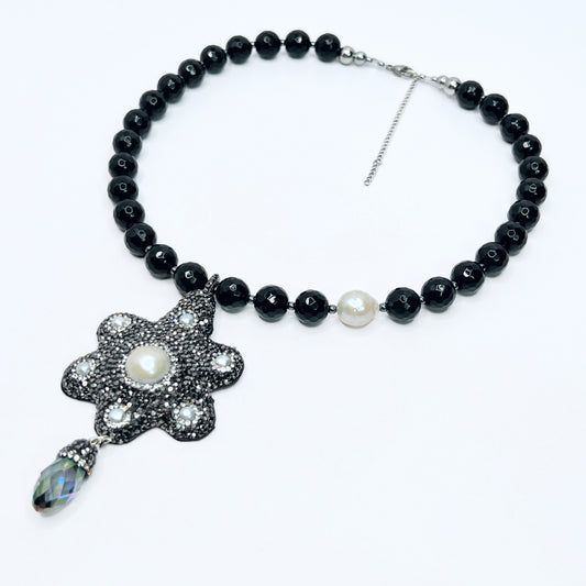 Black Friday SaleSouljewls – Nocturnal Grace Necklace | Onyx & Pearl Statement Charm