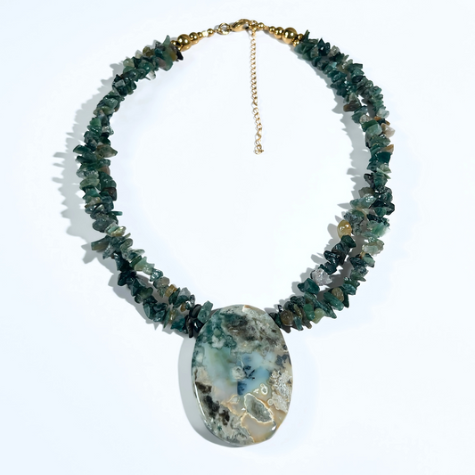 Black Friday SaleEternal Waves” Necklace – Moss Agate & Ocean Jasper