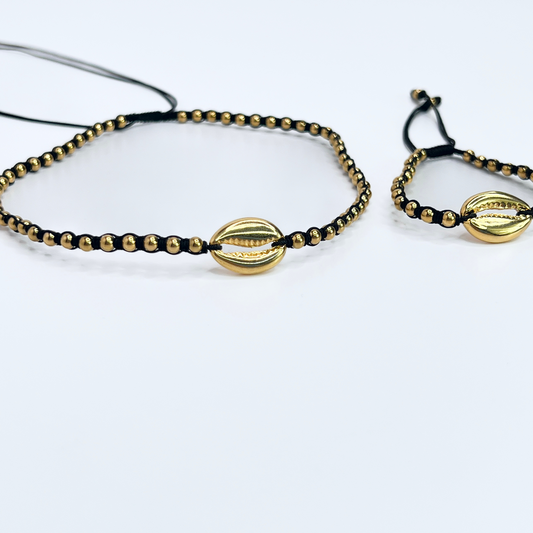 Souljewls “Mar de Acero” Set – Stainless Steel Bead Choker & Matching Seashell Bracelet