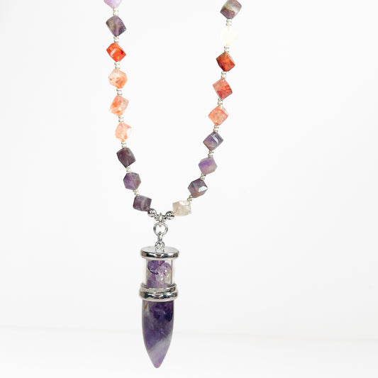 Multicolor Fluorite Necklace with Amethyst Point Pendant