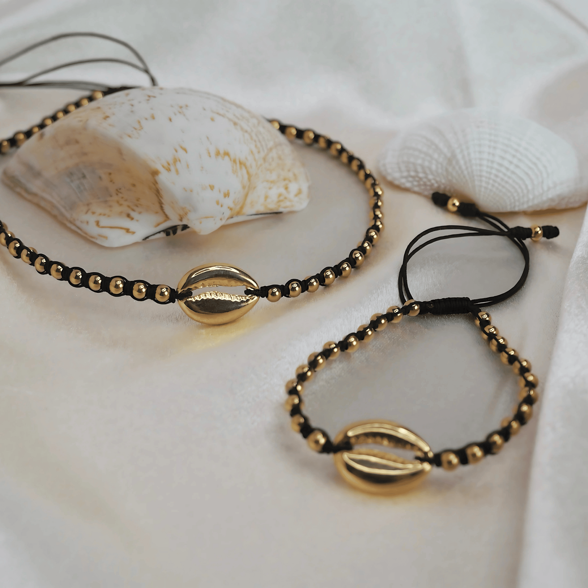 This stunning two-piece set includes a choker made with polished stainless steel beads, finished with a matching stainless steel seashell charm at the center — a subtle nod to the sea and your free-spirited nature.